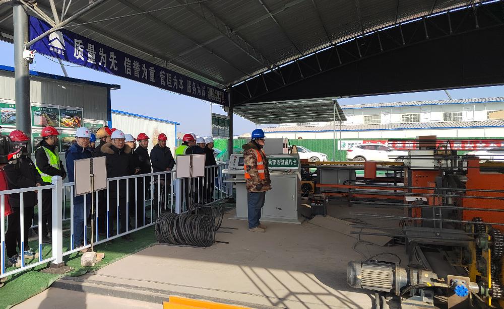 宋勝利一行重點(diǎn)察看了機(jī)勘院鋼筋籠全自動(dòng)智能化生產(chǎn)線作業(yè)情況。該生產(chǎn)線通過運(yùn)用數(shù)字化控制技術(shù),集成先進(jìn)的大數(shù)據(jù)分析、人工智能算法以及機(jī)器人技術(shù),實(shí)現(xiàn)了生產(chǎn)過程全自動(dòng)化,大幅提高鋼筋籠制作效率和質(zhì)量,提升現(xiàn)場(chǎng)施工管理水平,為項(xiàng)目順利實(shí)施提供了有力保障。宋勝利在調(diào)研檢查過程中肯定了機(jī)勘院項(xiàng)目團(tuán)隊(duì)在精細(xì)化管理、項(xiàng)目進(jìn)度控制、工程技術(shù)創(chuàng)新等方面做出的努力。