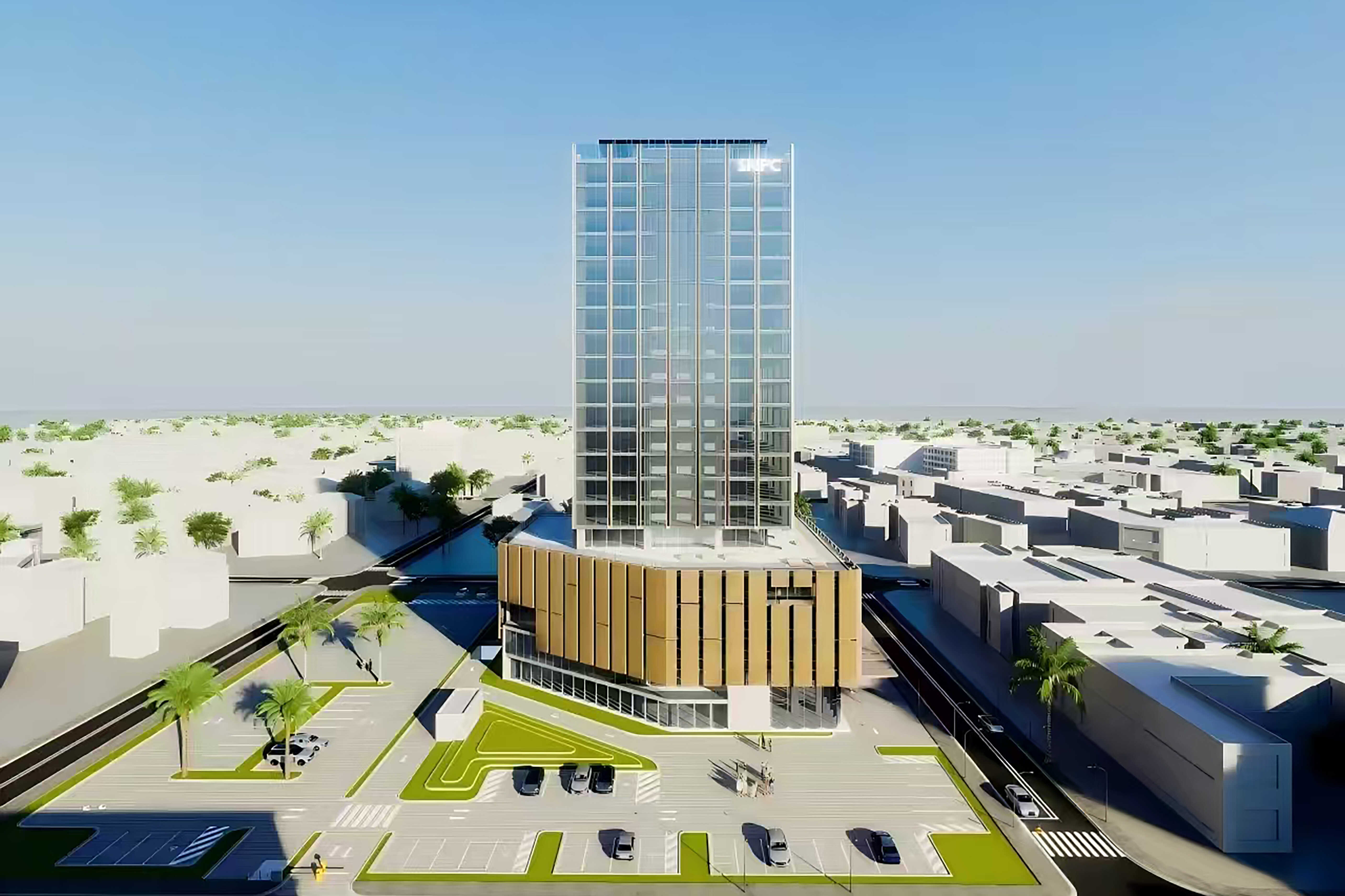 項目位于非洲剛果(布)經(jīng)濟中心黑角市,主要由主辦公樓、裙樓及禮堂組成,其中,主辦公樓地上21層,地下1層。作為該市的準地標性建筑,建成后將為剛果(布)國家石油公司提供現(xiàn)代化一流的辦公環(huán)境,滿足其舉辦各類大型會議、商務(wù)活動需求。